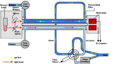 意大利ETG公司的EDK7100P型臭氧分析儀,基于紫外光源的朗伯比爾 Beer-Lambert定律,當(dāng)254nm紫外光通過(guò)臭氧氣體樣品腔室時(shí)被臭氧吸收,吸收值與臭氧濃度遵循朗伯比爾定律,通過(guò)測(cè)量吸收前和吸收后的紫外光信號(hào)的變化值,與參考光源進(jìn)行比對(duì)計(jì)算,并分析出被測(cè)臭氧的濃度值。